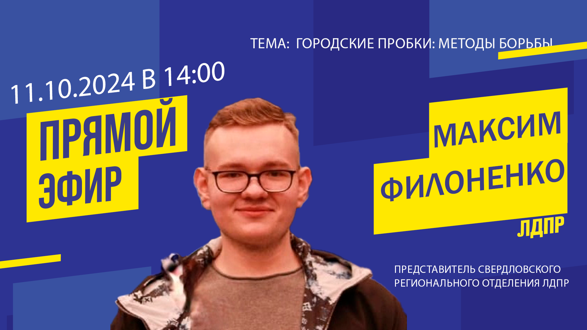 11 октября в штабе Свердловского регионального отделения ЛДПР на онлайн-площадке VK состоится прямой эфир на тему: «Городские пробки: методы решения». Проведет эфир и ответит на ваши вопросы представитель Свердловского регионального отделения ЛДПР Максим Филоненко