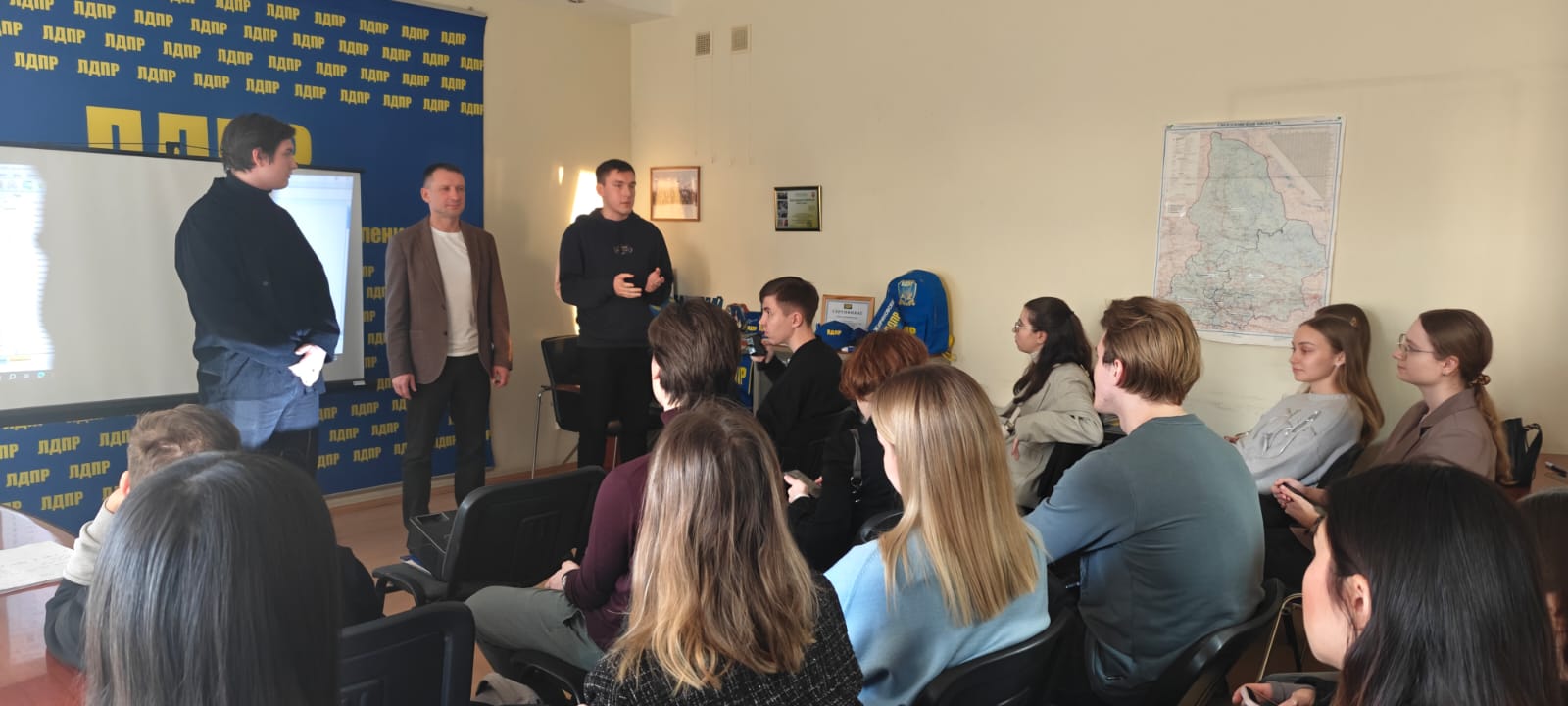 Координатор Свердловского регионального отделения ЛДПР Александр Каптюг совместно с руководителем Молодежной организации Свердловского регионального отделения ЛДПР Даниилом Кулаковым и Координатором Екатеринбургского городского отделения ЛДПР Евгением Коломытцевым провели встречу со студентами «Уральского федерального университета»