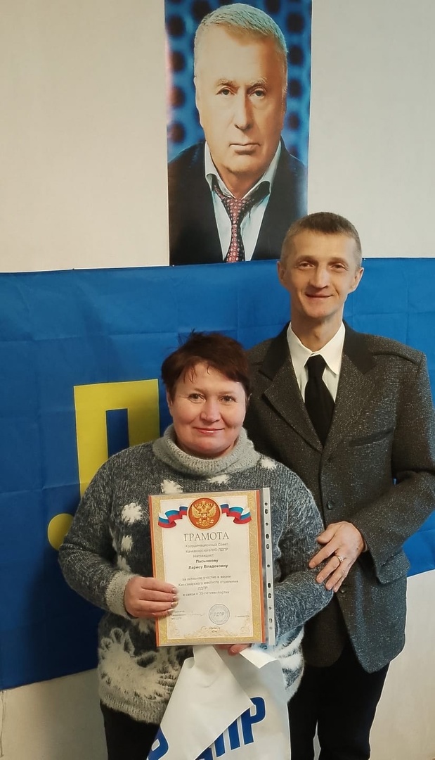 Координатор ЛДПР в Качканаре Евгений Станевой вручил грамоты активным партийцам