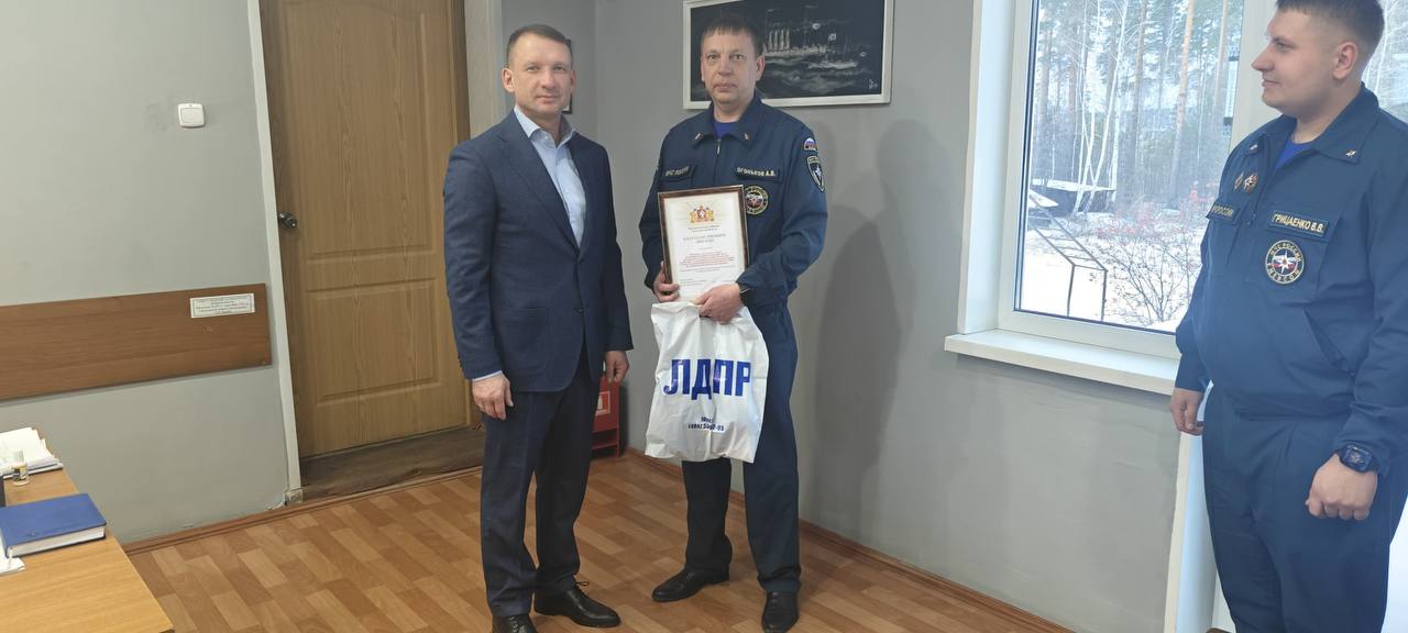 Координатор Свердловского регионального отделения ЛДПР, депутат Законодательного Собрания Свердловской Области Александр Николаевич Каптюг вручил награды сотрудникам противопожарной службы