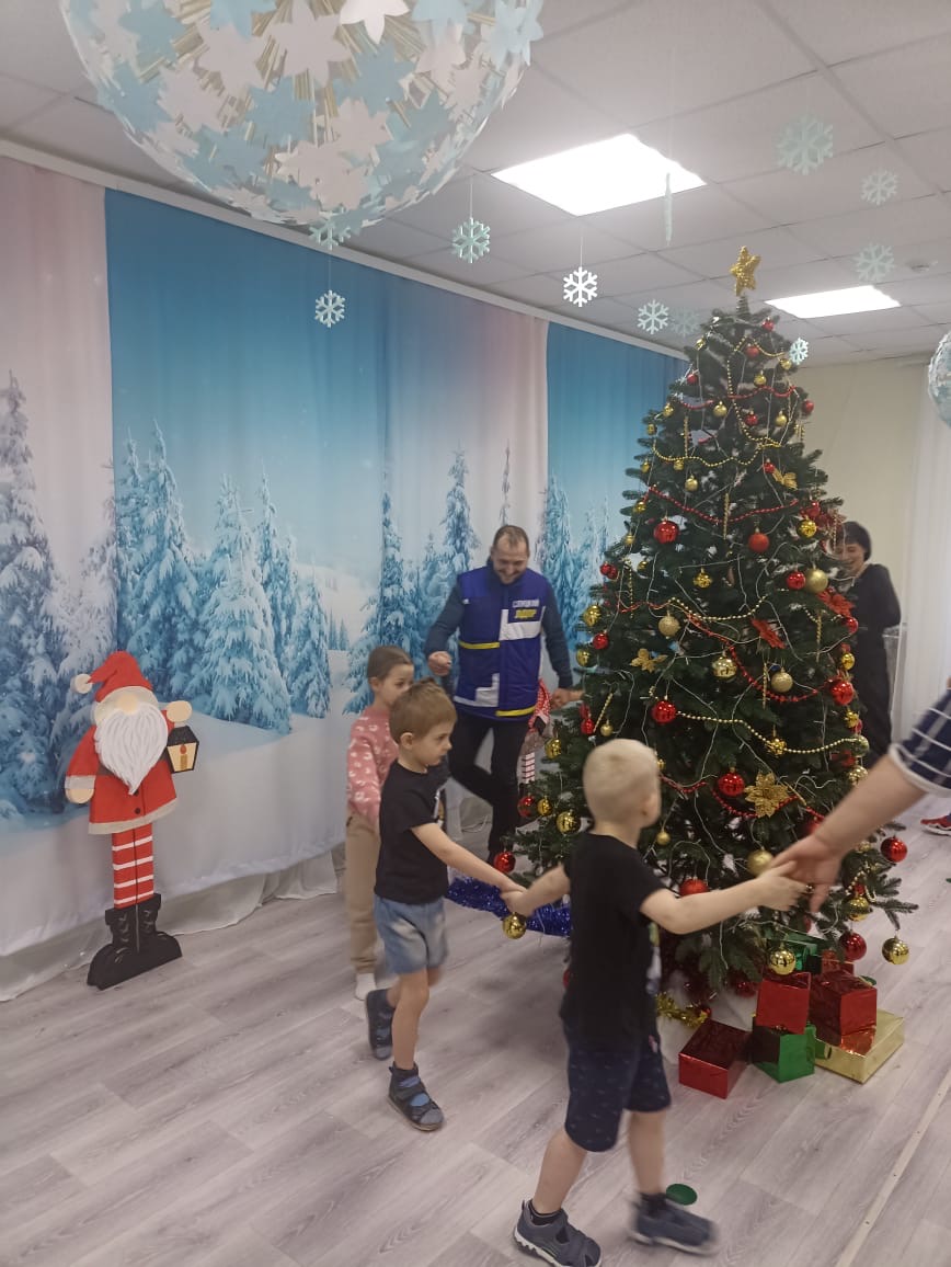 После вручения сладких подарков, партийцы вместе с детьми пели новогодние песни и водили хоровод у новогодней елки.