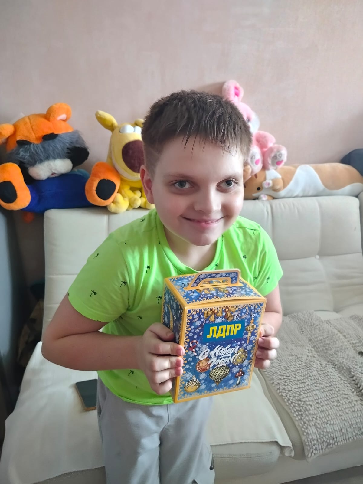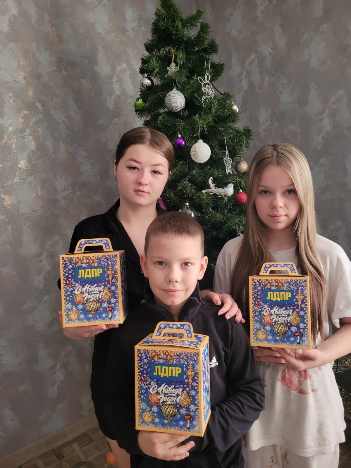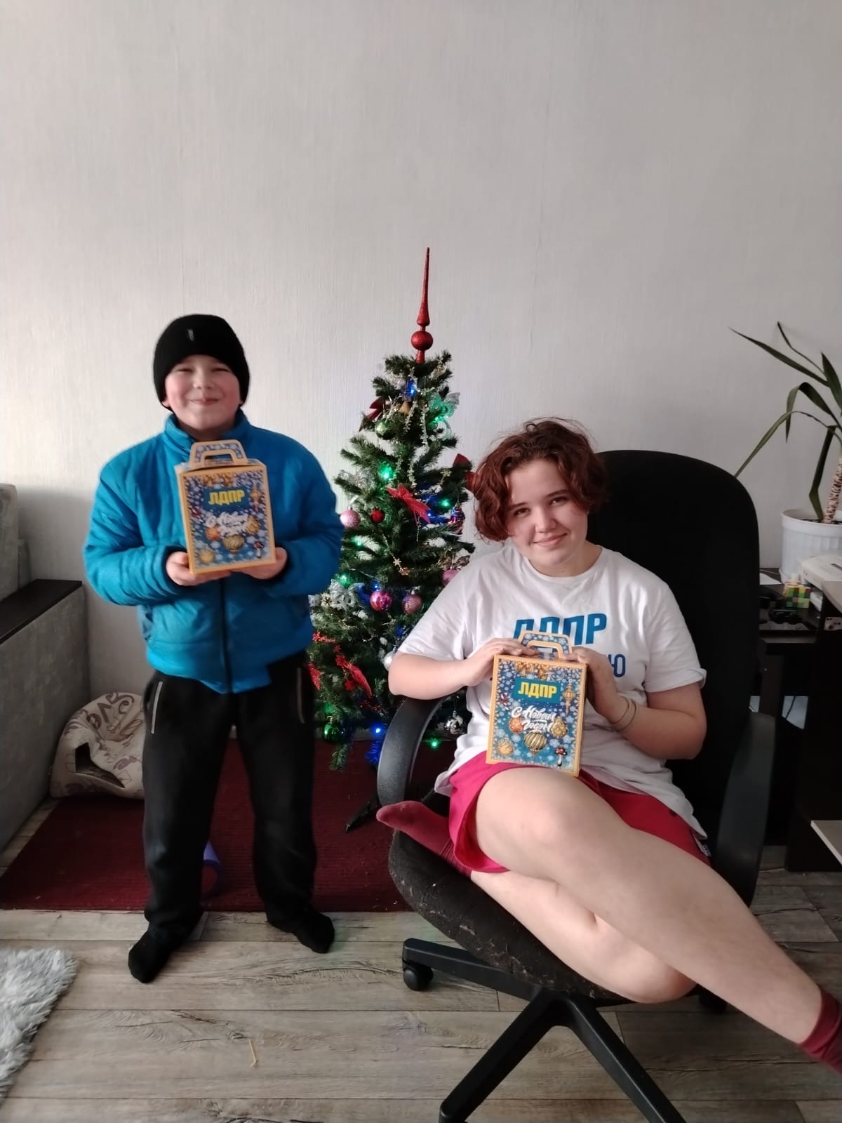 Каждый ребенок получает сладкий подарок от ЛДПР, а также теплые пожелания от представителей партии.