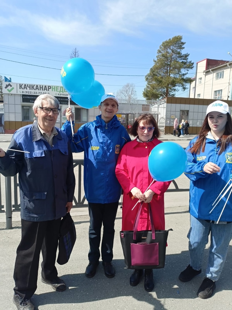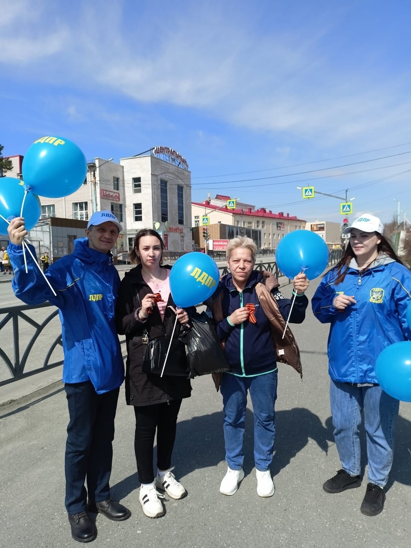 На улицах Качканара партийцы раздавали воздушные шары с символикой ЛДПР и георгиевские ленты – символ воинской славы и памяти о павших героях. Встречая жителей, координатор ЛДПР лично поздравлял каждого с наступающим праздником, пожелал здоровья, благополучия и мирного неба над головой.
