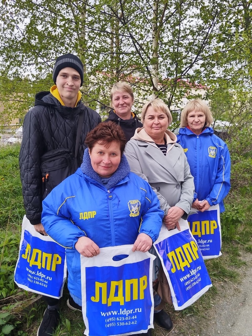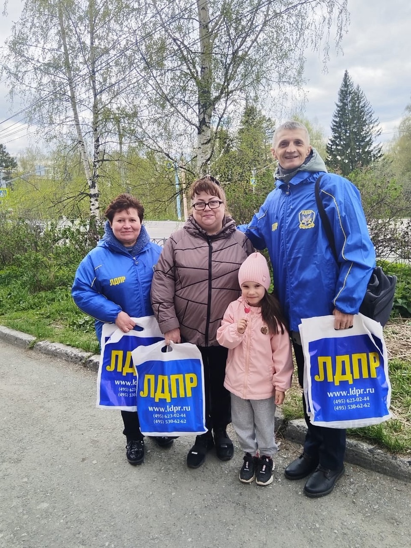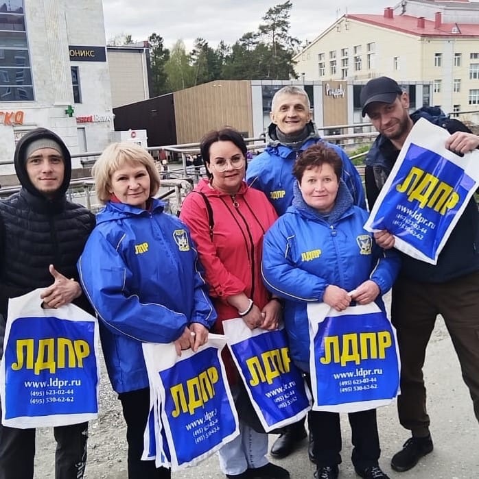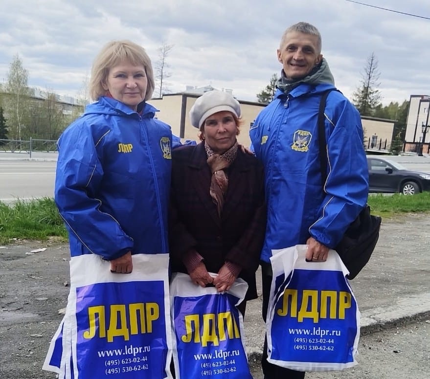 Координатор Качканарского местного отделения ЛДПР Евгений Станевой совместно с партийцами поздравил горожан с Днём города