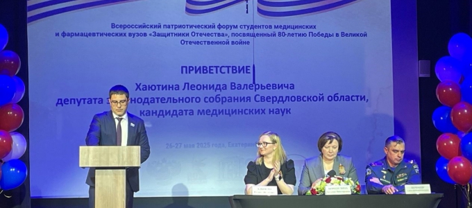 В Уральском государственном медицинском университете состоялся Всероссийский патриотический форум студентов медицинских и фармацевтических вузов «Защитники Отечества». В мероприятии принял участие депутат Законодательного Собрания Свердловской области Леонид Хаютин
