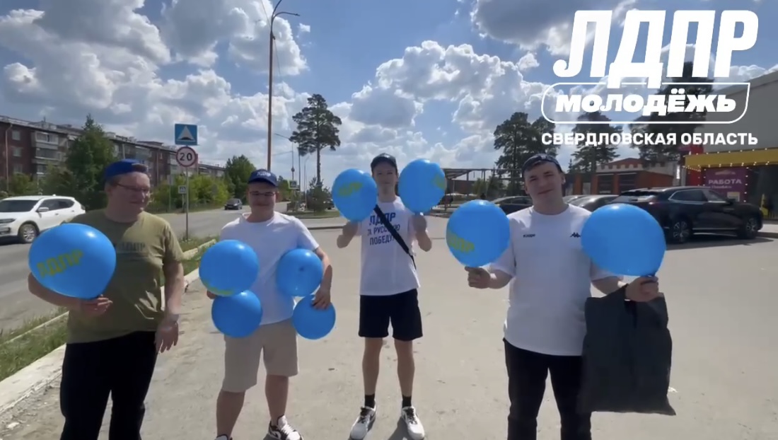 Активисты Молодежной организации Свердловского регионального отделения ЛДПР поздравили детей и их родителей города Арамиль с Днём защиты детей