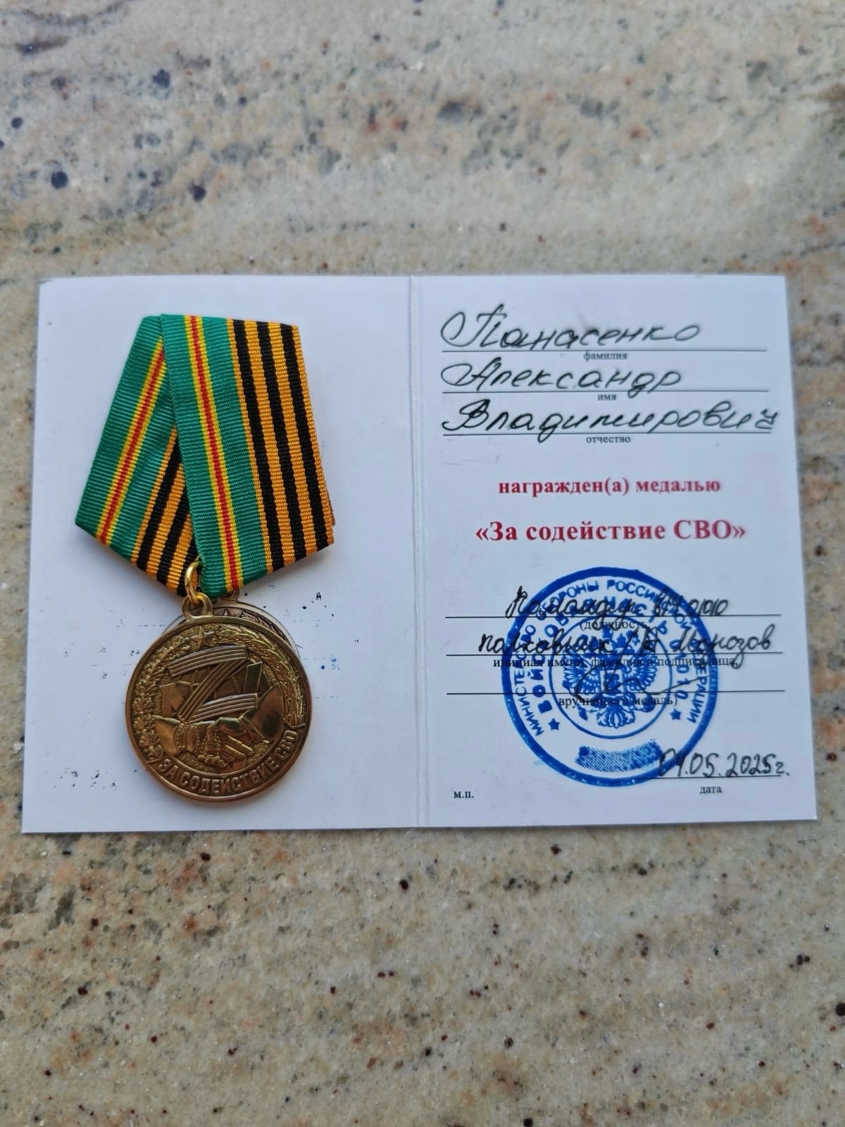 Депутату Александру Панасенко вручили медаль «За содействие СВО»