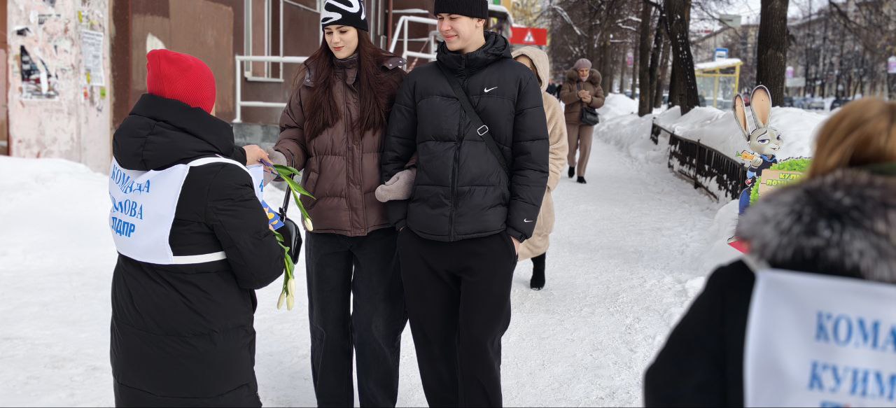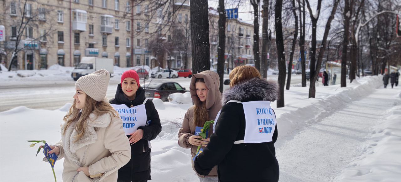 Активисты ЛДПР Нижнего Тагила под руководством координатора Екатерины Носовой поздравили женщин города с 8 Марта