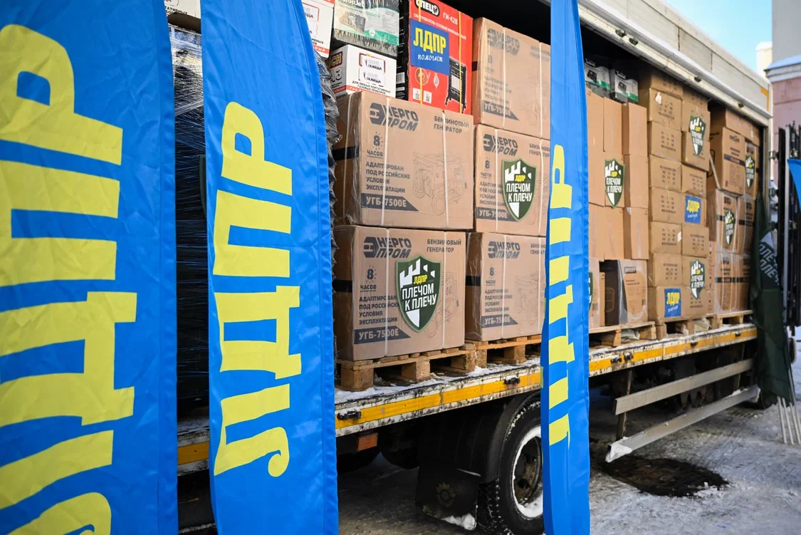 Лидер ЛДПР Леонид Слуцкий дал старт отправке колонны гуманитарной помощи, предназначенной для жителей Белгородской области